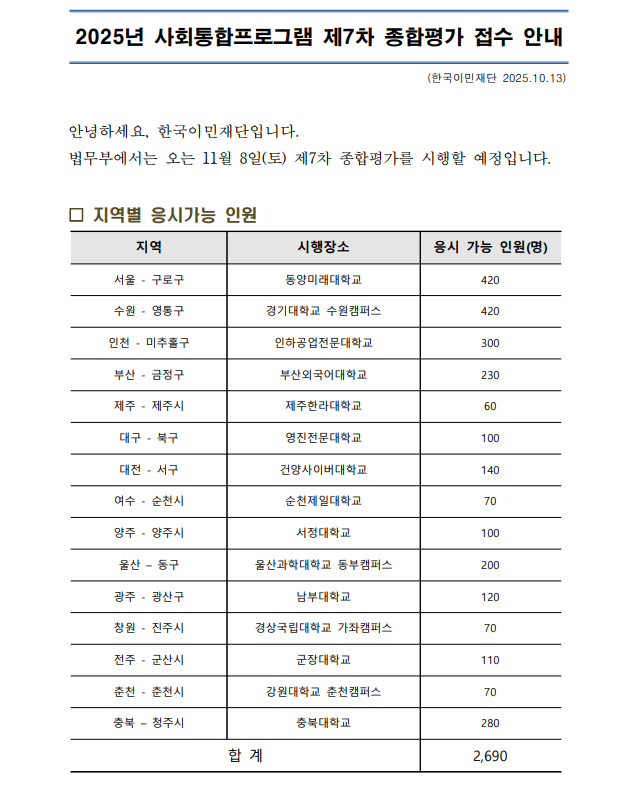 7차 종합평가 접수안내(전주지역 추가)